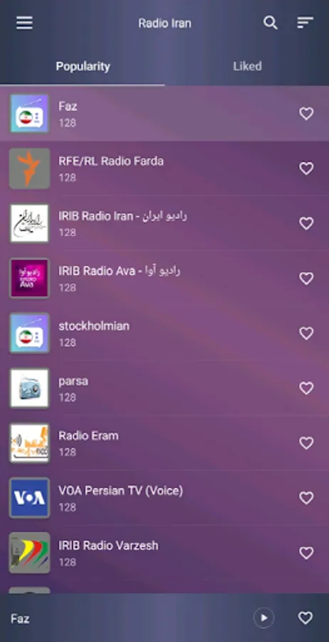 RFE/RL Radio Farda, IRIB Radio Iran - رادیو ایران, Faz, IRIB Radio Ava - رادیو آوا, stockholmian, Radio Eram, VOA Persian TV (Voice), parsa, IRIB Radio Varzesh, Radio Tehran - رادیو تهران, IRIB Radio Fars - رادیو فارس, IRIB Radio Farhang, Iran On Air, Radio Mojdeh, Radio Javan, Radio Mojahed - رادیو مجاهد, ...