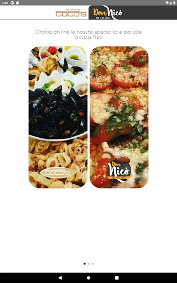 The Coco's Restaurant offers all-Italian cuisine, with first choice products, meat, fish and a variety of shellfish. The fish menu, rich in typically seafaring flavors, is inspired by Mediterranean cuisine based on genuine products cooked with simplicity and imagination. The basic ingredient is fresh Mediterranean fish, which is mainly seasoned with our own extra virgin olive oil, fresh cherry tomatoes, chilli, and the typical fragrant herbs of the Italian coast.