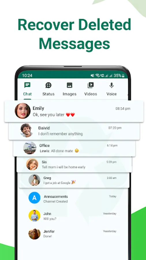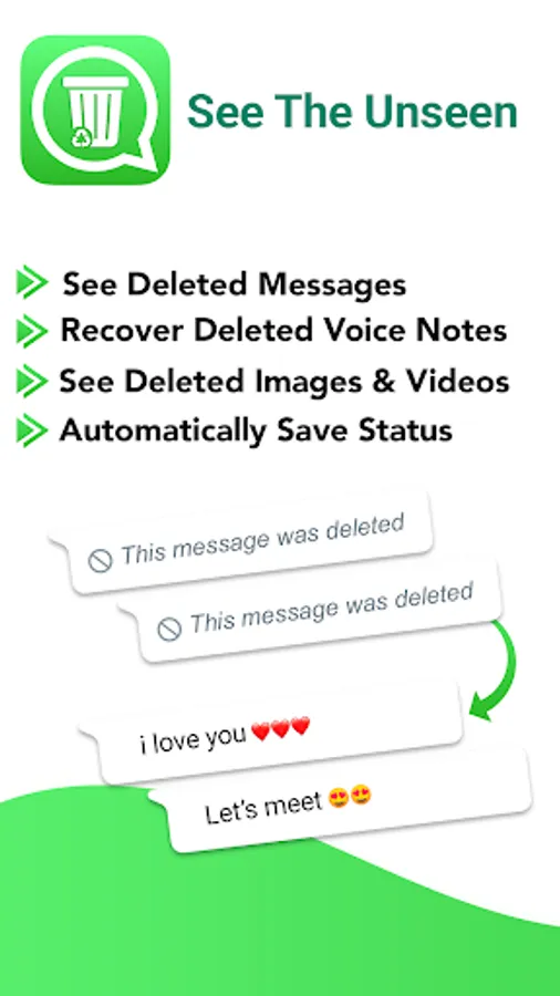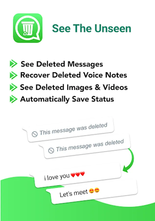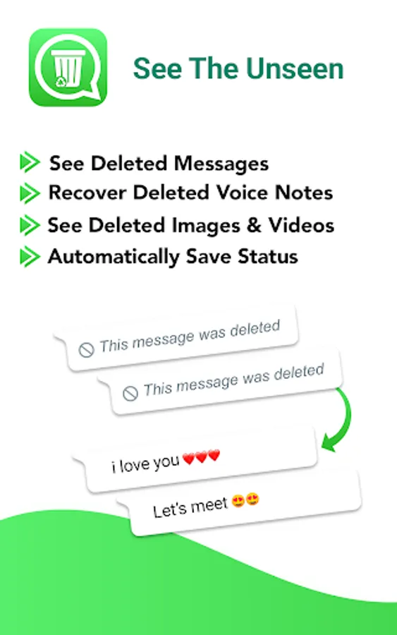 WhatDeleted recovers WhatsApp deleted messages, photos & videos by scanning notifications. You can recover WA deleted messages, save status and recover deleted photos and videos.
