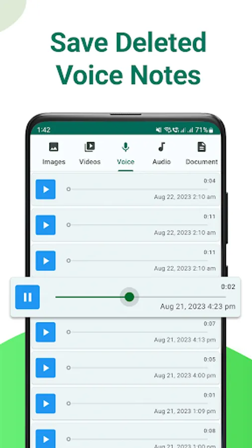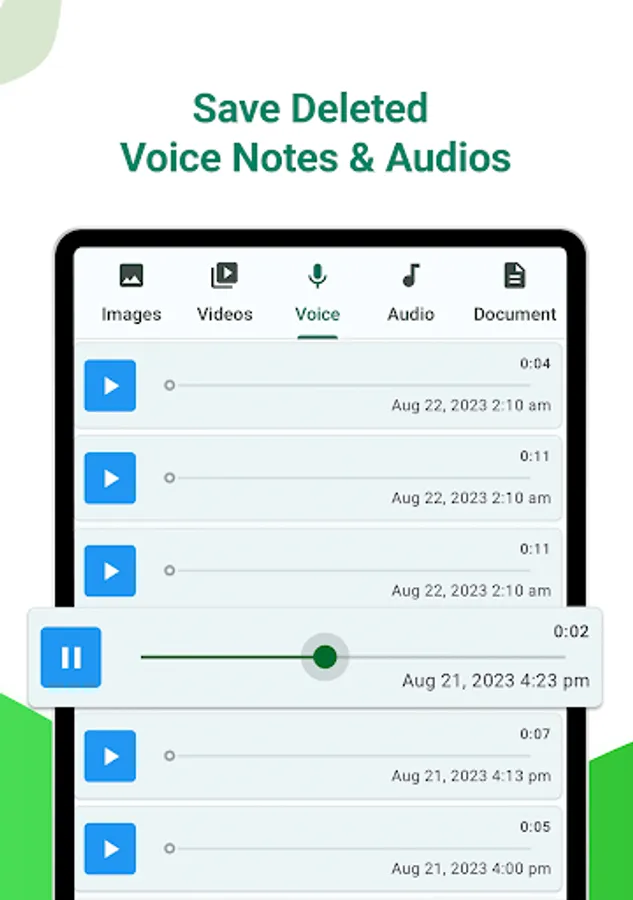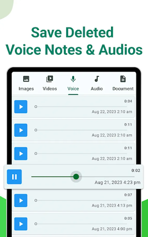WhatsDeleted allows you to save status of your friends. You can download status and share to other social media apps. By using WhatsDelete you can download status, videos, voice notes and documents. WhatsDeleted works as a story saver or video downloader.