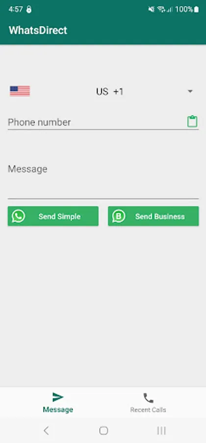 WhatsDirect is a simple utility app that lets you send messages on WhatsApp without saving contact number. Using this WhatsApp chat opener you can open chat of any phone number without saving it in contacts. You can send messages in WhatsApp or WhatsApp Business.