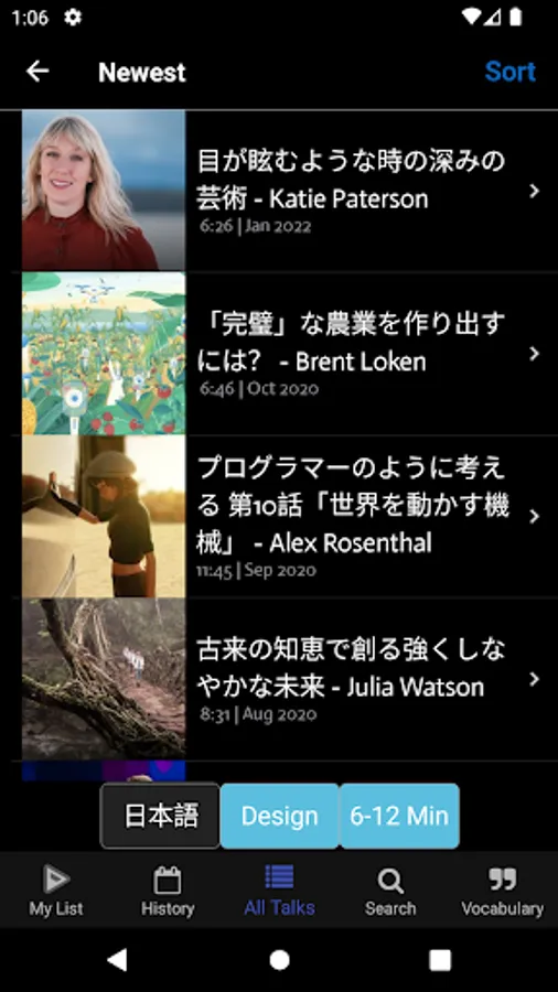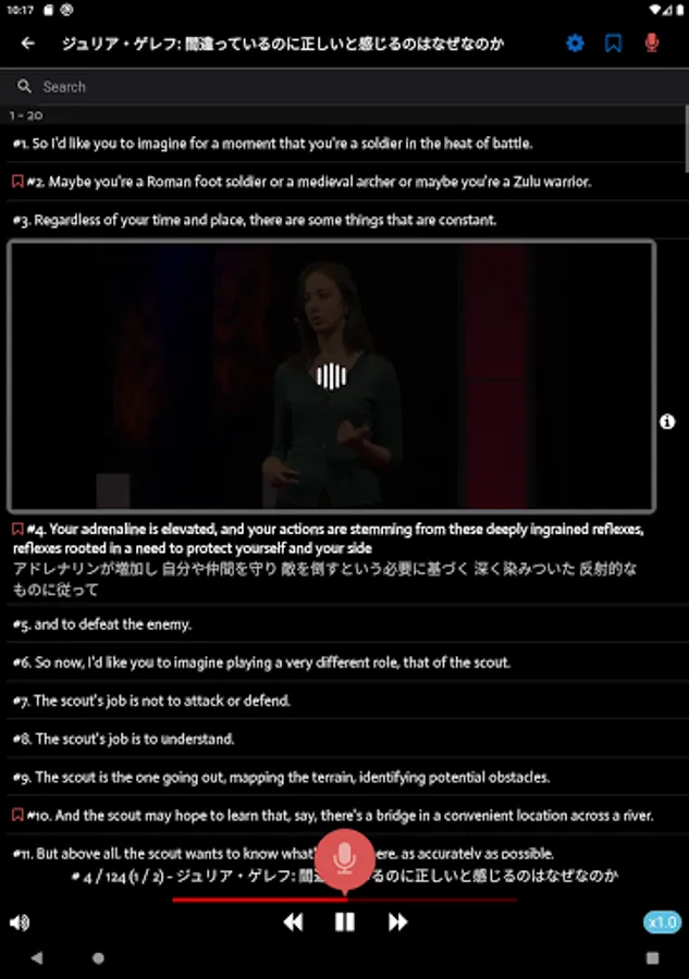 Because it only takes a short period of time, you can use it on the bus or subway. You can also use it as a TED viewer through the video function with the subtitles activated.