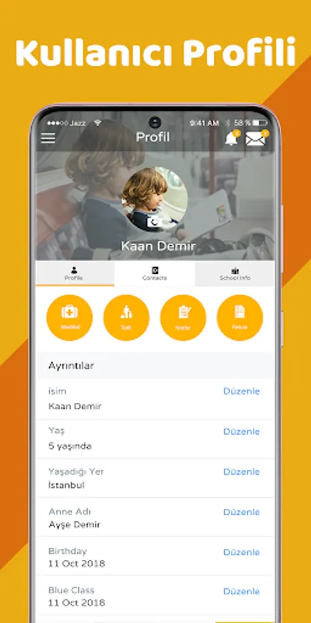 My child is with me Kindergarten Mobile Application, whether on holiday or at work, the feeling that parents will always feel the same; Um My child is with me ”