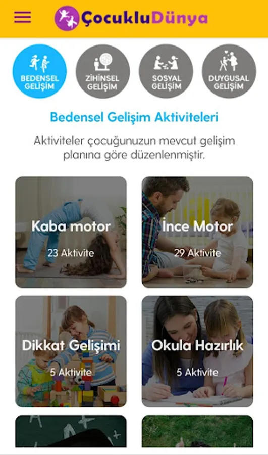 You can be a free member of the world with children. Every day we will offer you 4 different games and activities to develop your child. To do more, see the activity catalog immediately. Download our intelligence cards and have a pleasant time with your child at home. If you are wondering what awaits you this month, you can check the monthly development information.