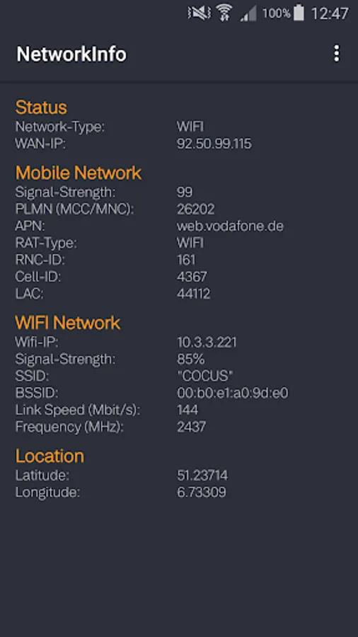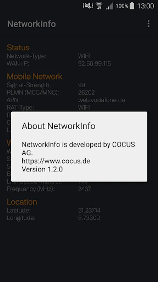 The COCUS NetworkInfo app provides useful information about the current network connection