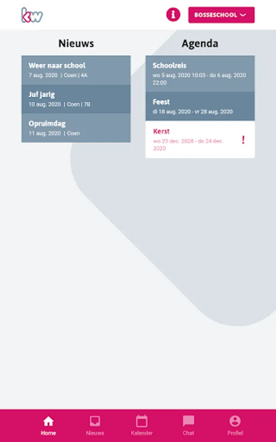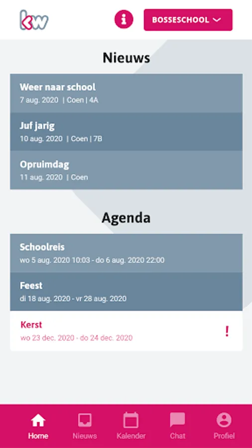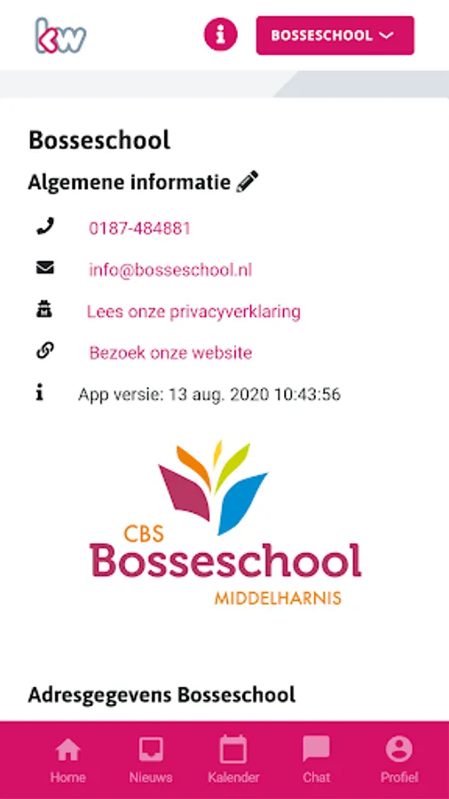 This app is intended for communication between parents and teachers of the school community Kindwijs.