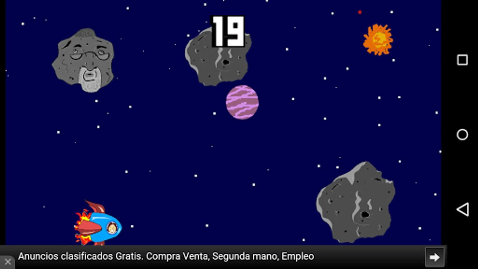 -3rd: Tap the screen to move your space ship up and avoid meteorites. The longer you live the higher your score.