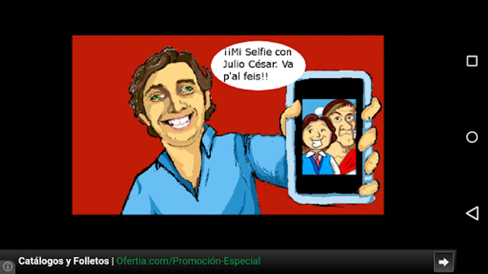 This game is based on a famous Spanish character who loves to take selfies with famous people. In this game our hero will travel in time and take selfies with famous people of the time, like Julius Caesar and Neil Armstrong. It includes 3 simple minigames: