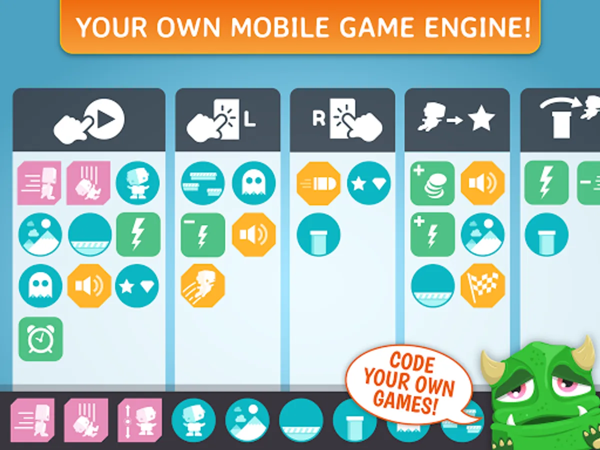 In Coda Game you can be the boss of your own awesome games. Drag and drop the visual coding blocks to create games such as Air Hockey, Endless Flyer and Platform games and share them with the world! Your imagination is the only limit!