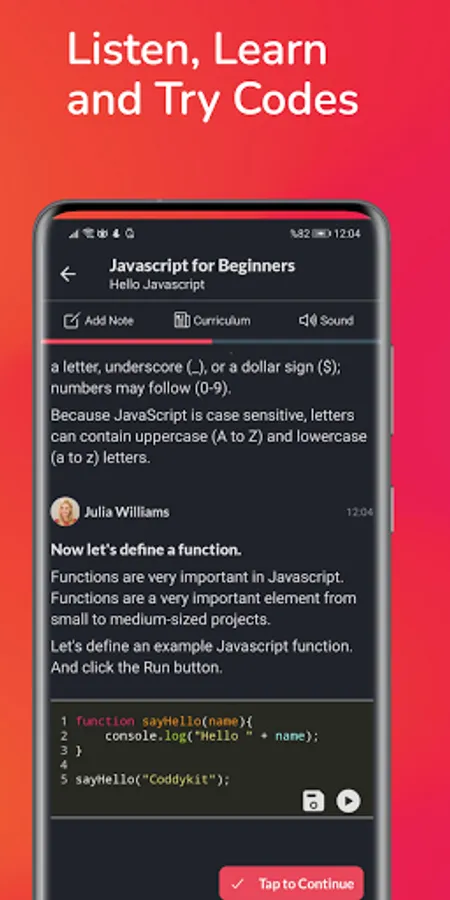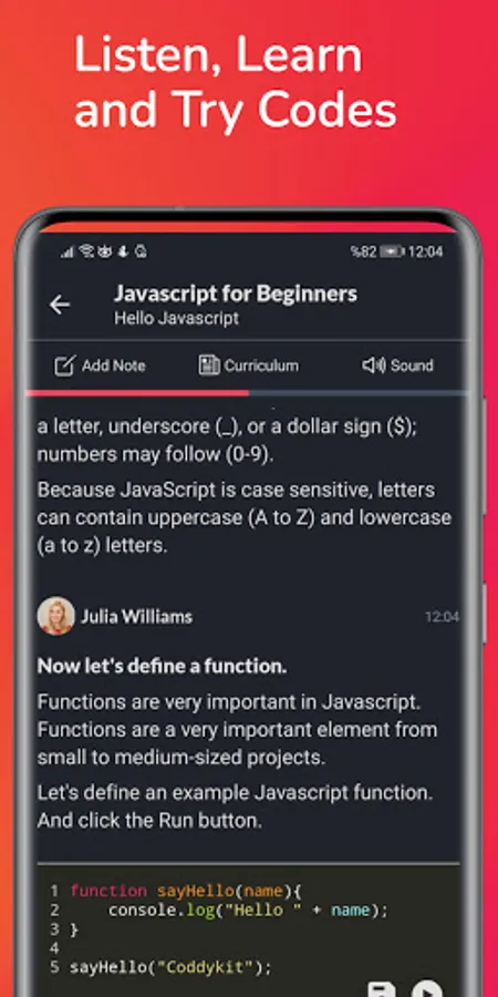 Apart from the mobile application, you can continue to learn free programming with the web application. This app is perfect for solo learners. You can also test the codes you have learned with the compiler in the application, just like w3school. With the coding knowledge you will learn with CoddyKit, you will be able to make competitive mobile applications.