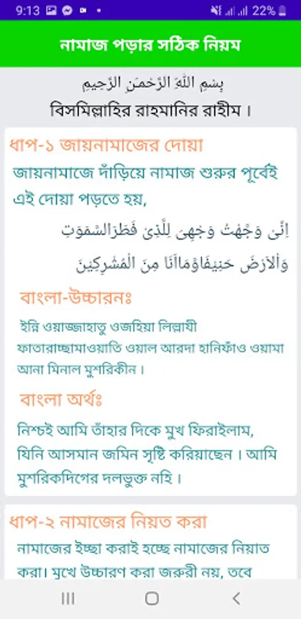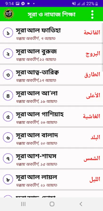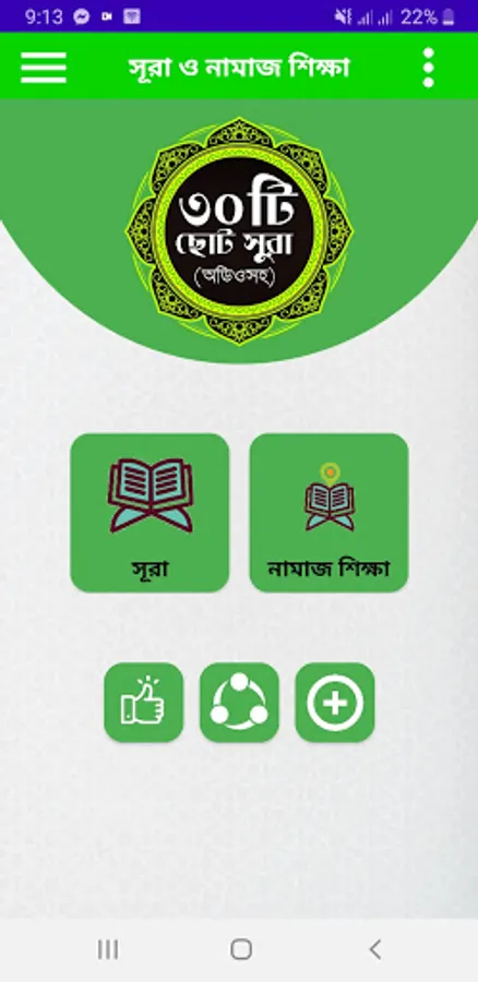 এখানে ৩০ ছোট আকারের সুরা বাংলায় এবং অর্থসহ তাফসীর দেওয়া হয়েছে। প্রতিটি সুরার সাথে বিখ্যাত কারীগনের অডিও দেওয়া হয়েছে। আমরা যারা সয়ের অভাবে বাহিরে গিয়ে সুরা শিখতে পারছেন না তাদের জন্য এই অ্যাপলিকেশনটি অনেক উপকার হবে। তাছাড়া এখানে নামাজের যাবতিয় দোয়া দেওয়া হয়েছে এবং নামাজের সকল প্রকার নিয়ম পাট বাই পাট সুন্দর করে বুঝিয়ে দেওয়া হয়েছে।