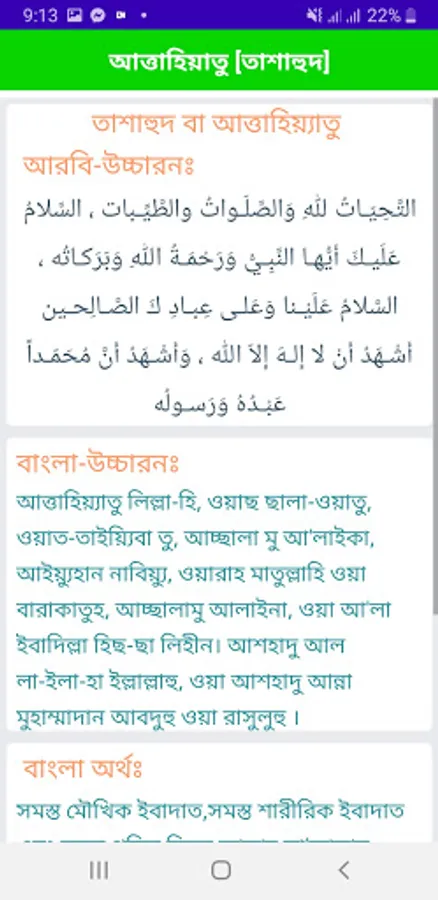 ২। তাশাহুদ (আত্তাহিয়াতু)