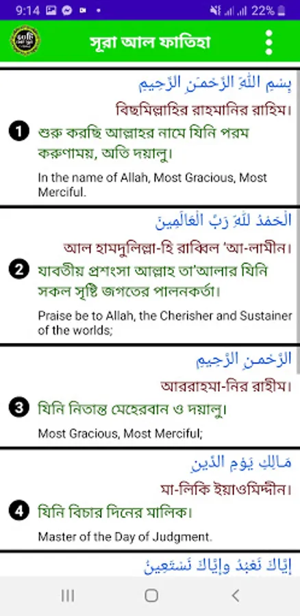 ১। সূরা আল ফাতিয়া