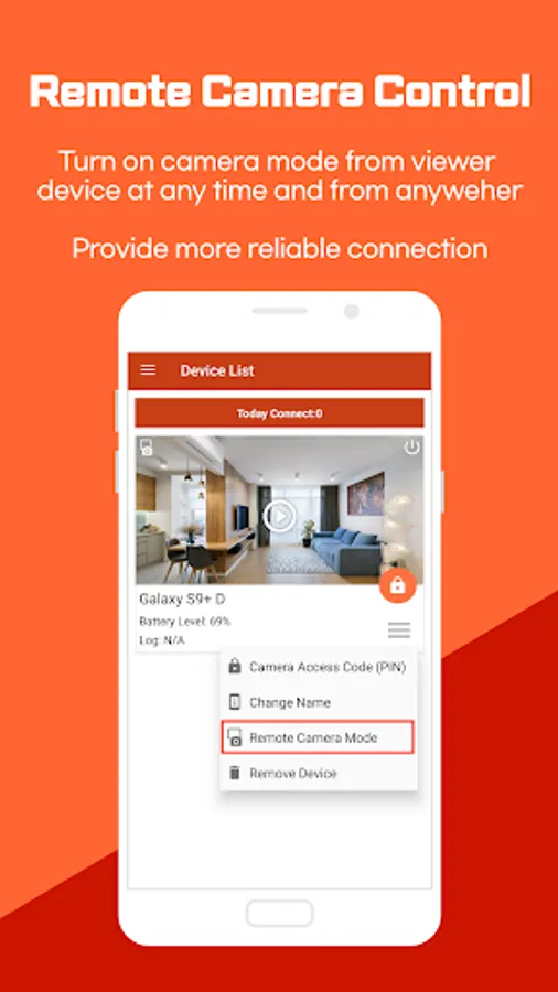- Remote Cotrol: You can turn on/off camera mode remotely from viewer device.