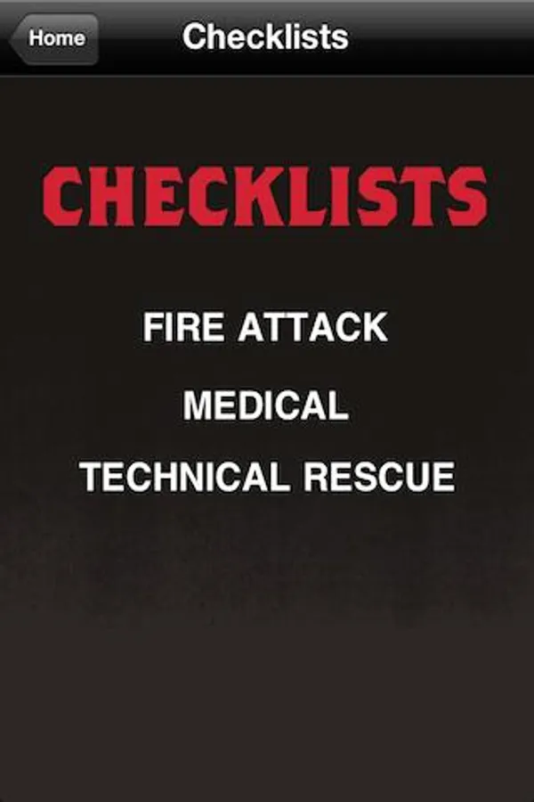 - Checkoffs: The many different types of scenes that an emergency responder can find themselves in are included here with the ability to check off necessary functions. The checkoffs section is divided into three sections. Medical, Firefighting, and Technical Rescue.
