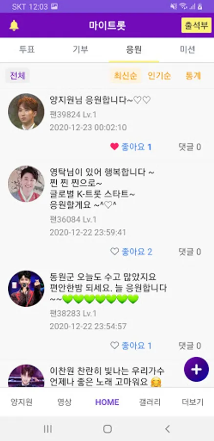 Listen to your favorite singer's trot a lot, vote, leave cheering posts, and click'Like' a lot on the cheering posts.