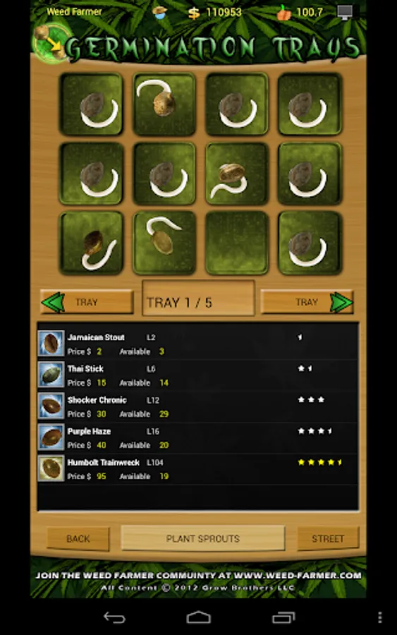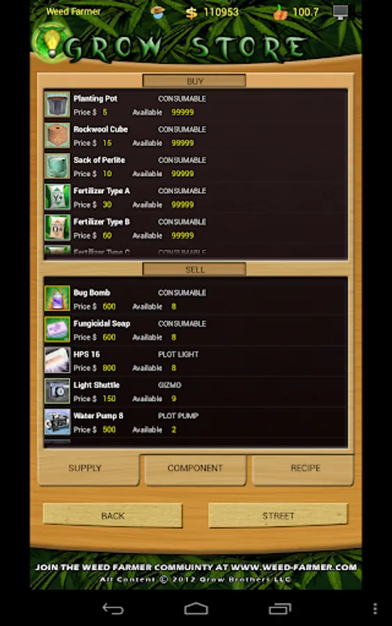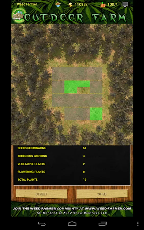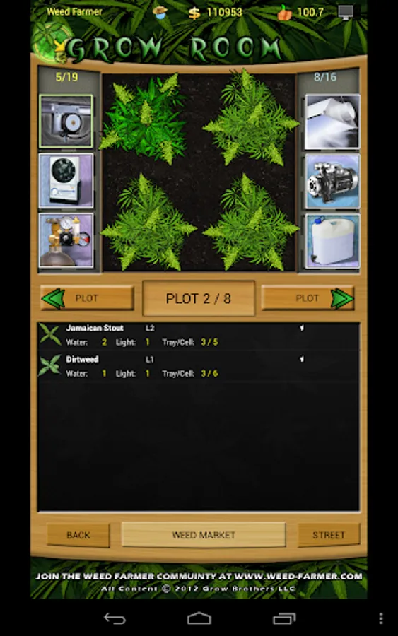 * Upgrade your grow location from a small starting closet to a massive warehouse. But don't stop there, Weed Farmer Overgrown allows you to continue expanding to the great outdoors to a maximum of 65 plots allowing you to grow up to 260 marijuana plants of different types at the same time!