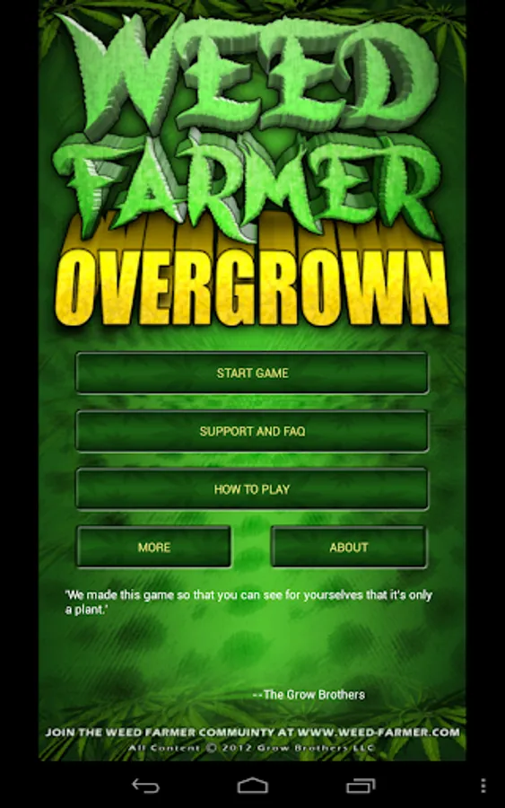 NOTICE - After six long years, Weed Farmer Overgrown is being semi-retired. It will stay available for everyone who has purchased it, so they can download it when they get new devices, etc, but the price has been raised to $20 to discourage people from buying it in the future.