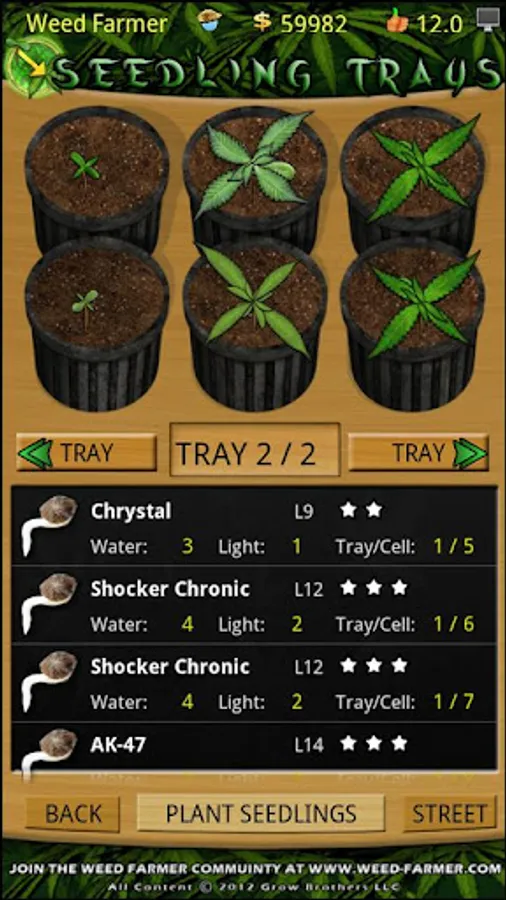 * Grow dozens of real life marijuana strains in both indoor and outdoor environments. Each strain has a unique look, grows twice as fast as in the first game and have different visuals for the flowers and buds by variety.
