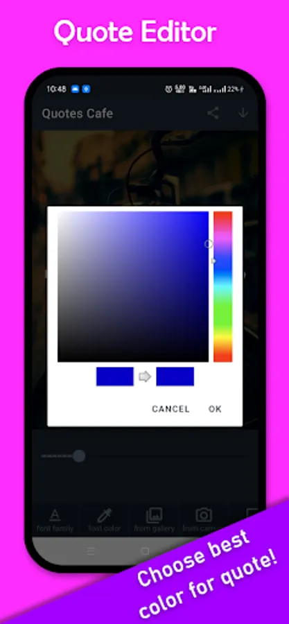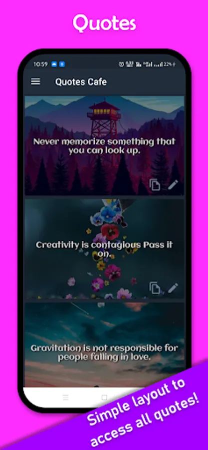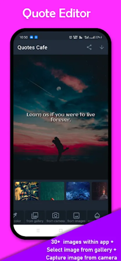 In this quote creating app you can edit and create image of quotes with different font, background and you can use many other things.