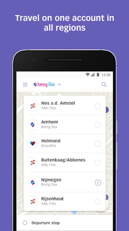 At the moment, we offer the OV flex service in the following areas: Rijsenhout, Abbenes, Buitenkaag and Nes a/d Amstel (AML Flex)