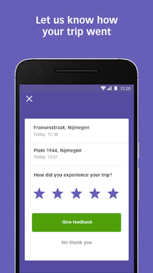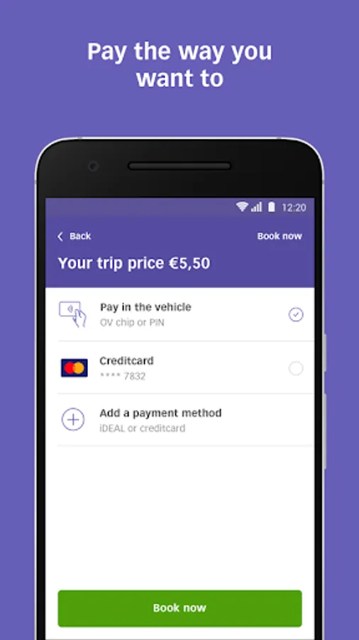 You can pay easily by linking your bank account or credit card with your account in the app. You can also pay in the vehicle with your OV chip card, debit card or credit card. We don’t accept cash payments.
