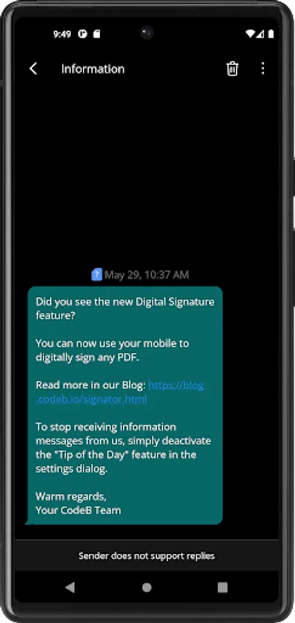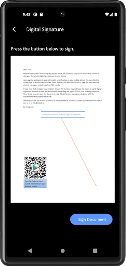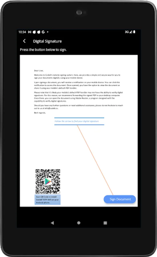 In today's digital landscape, the ability to sign documents digitally is vital. Hence, CodeB TOTP SMS incorporates an inbuilt PDF Signator and Viewer. Used keys are stored in the hardware-backed keystore "Strongbox", adding an extra layer of security and authenticity to your important documents.