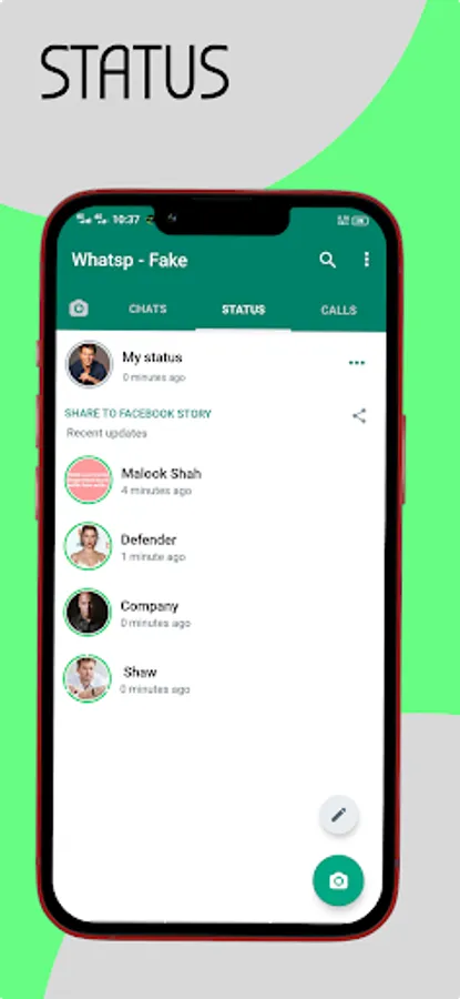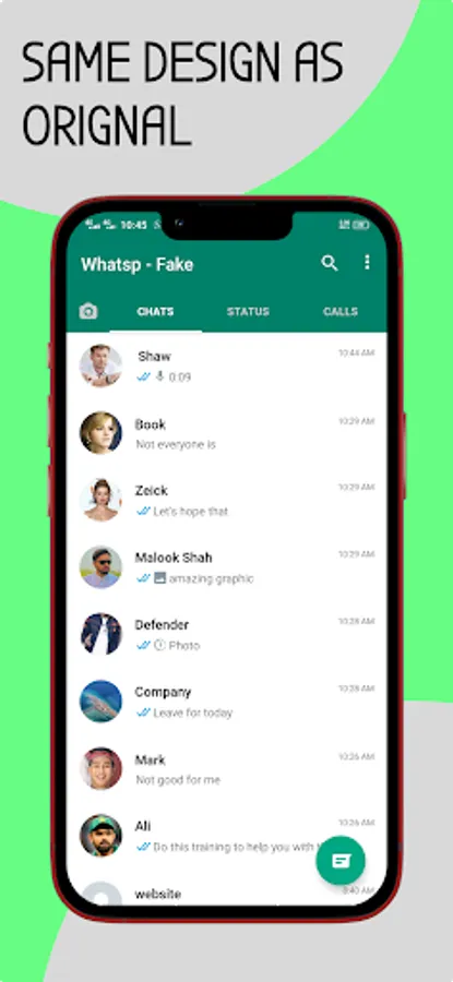 Note: The Fake Whatsp Chat Conversation app is a prank app. It is not a real chat app. It only allows you to create fake chats, status , call history.