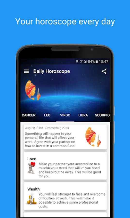 This is the ads free version of Daily Horoscope, our mind-blowing horoscope app with more than 1 million downloads worldwide and more than 17,000 5-stars reviews!