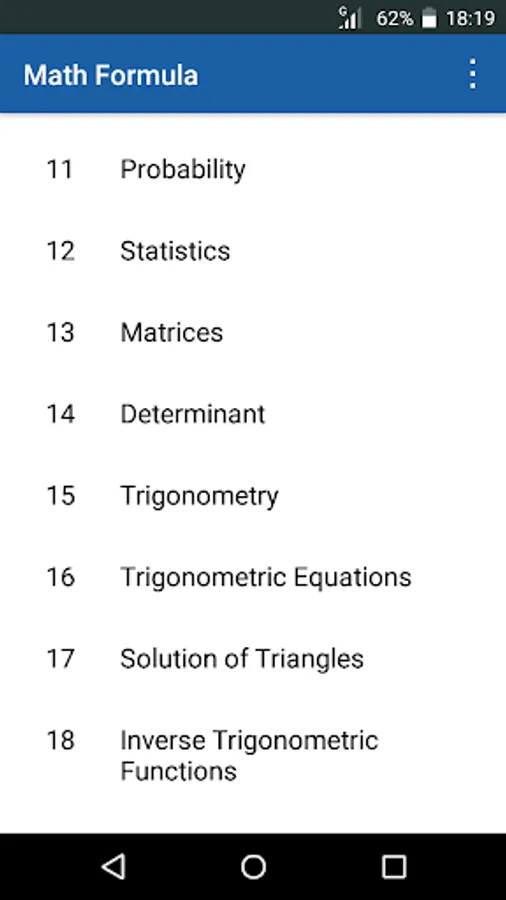 This App consolidated all Math Formula required For Intermediate Student.