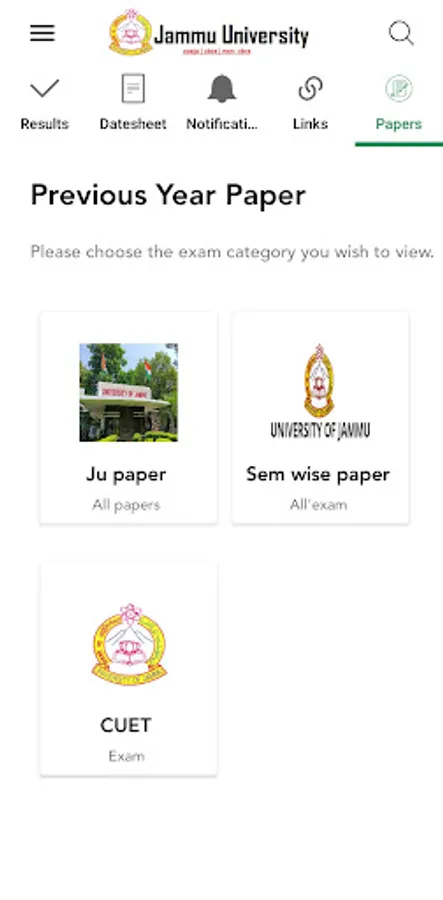 5. Papers: in this tabs we provides you All previous year paper semester wise of each course under University of Jammu and other Entrance Paper Cuet, Juet, Net Sample paper, and others University Paper.