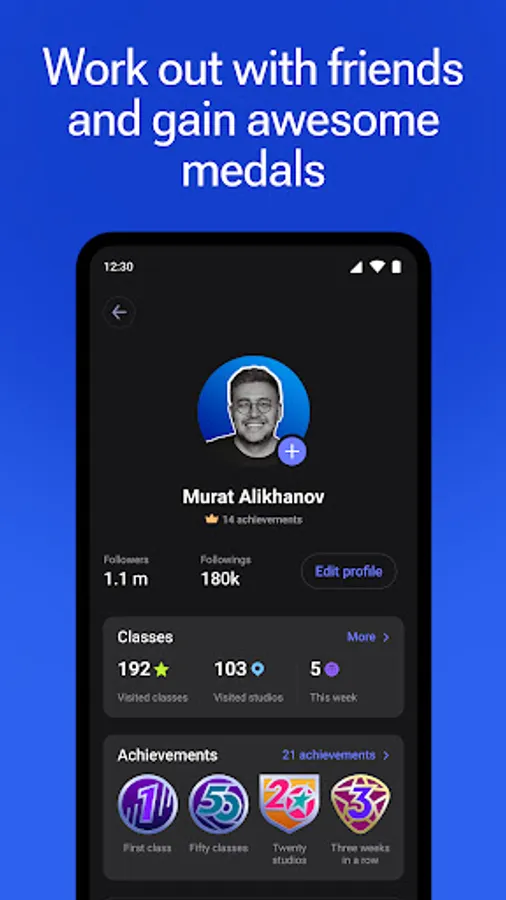 Follow your friends. See what classes they have and work out together. For example, if you have signed up for boxing, you can invite a friend inside the app. By attending classes, you can earn achievements and your friends will see them too