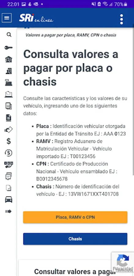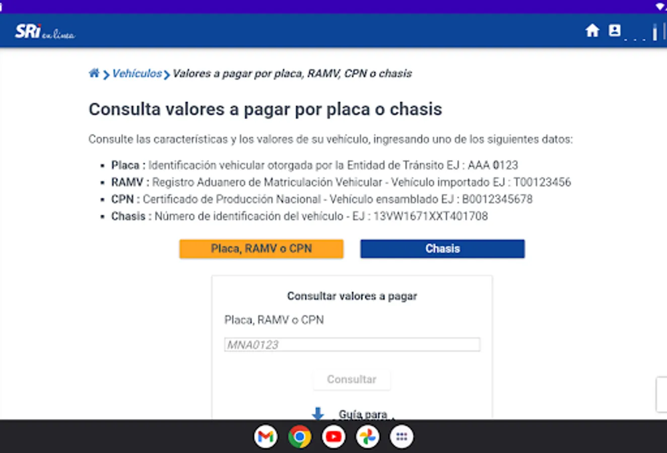 The application can display important details such as make, model, year, chassis number, engine number, fuel type, registration date, last technical review date, ticket history, and any other relevant data that is available in the database. data from the appropriate traffic department or government agency.