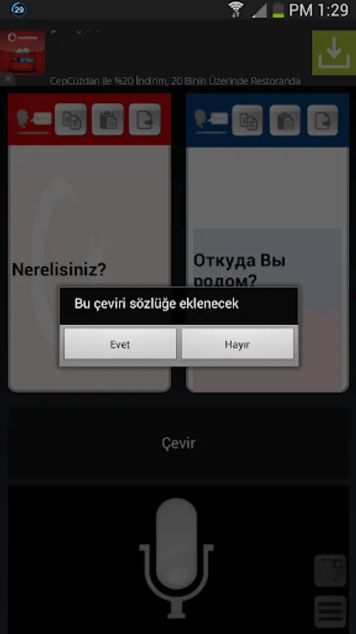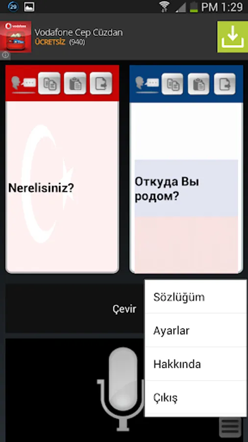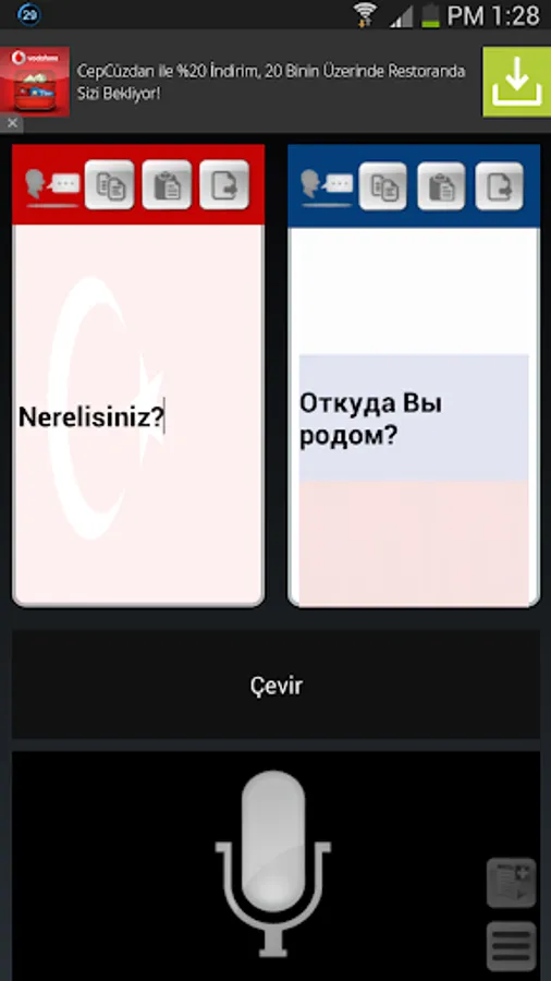 Conversation or text you type automatically or russian russian translation from Turkish to the Turkish, written and (optionally) a voice tells you