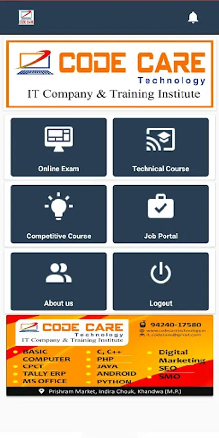 Code Care Technology app useful for online study like CPCT, BASIC COMPUTER, TALLY, C/C++, DIGITAL MARKETING JAVA