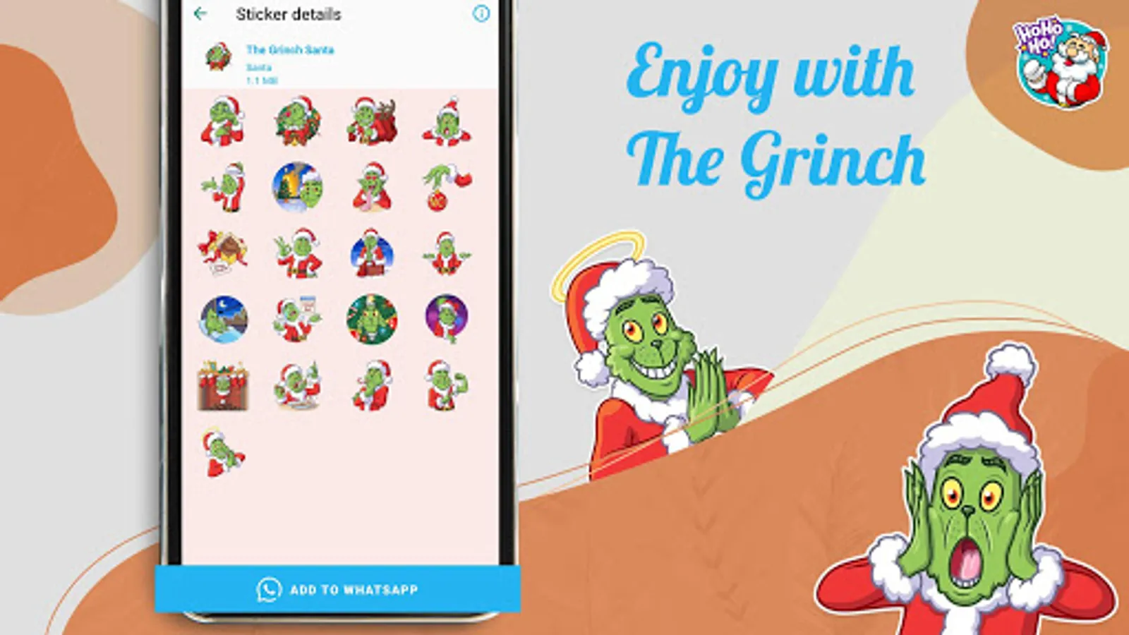 The Grinch WhatsApp Stickers: See how The Grinch Stole Christmas, Christmas decorations, Christmas picture, Christmas ornaments, Xmas tree, Christmas gifts, hat by becoming Santa Claus in the Santa Claus village.