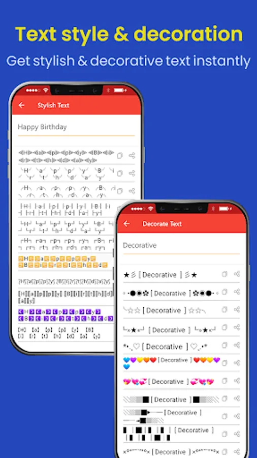Along with text convertors here you will also get a stylish text maker and decorated text maker.