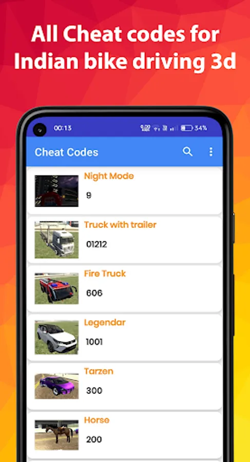 Introducing the Indian Bike Driving 3D Cheat Codes Companion, the essential companion app for all avid players seeking to maximize their gaming experience. This comprehensive cheat code database is your one-stop solution to access an extensive collection of cheat codes, hints, and tips to master the game and take it to new heights.