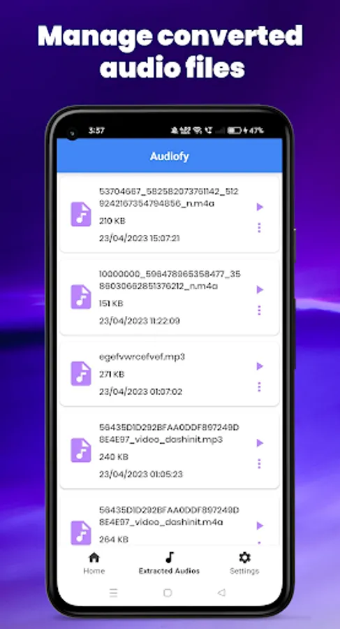 Video to Audio Converter is perfect for those who need to extract audio for a specific project or create ringtones from their favorite videos. The app also supports sharing and exporting of audio files to other devices and platforms, making it a versatile tool for any audio-related task.
