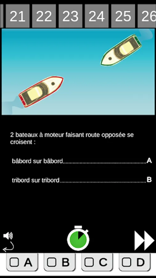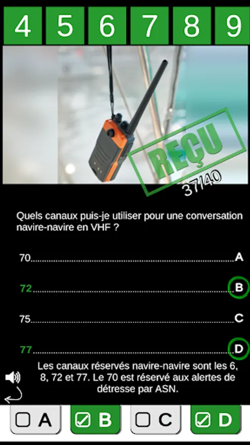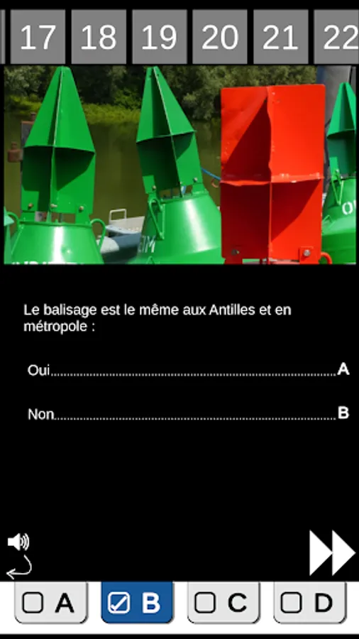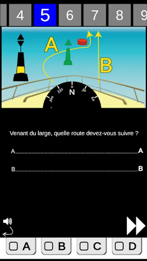 The questions conform to the official program and simulate as closely as possible the real conditions of passing the theoretical examination for the coastal pleasure boat licence, thanks to an interface recreating the remote control used during the official licence.