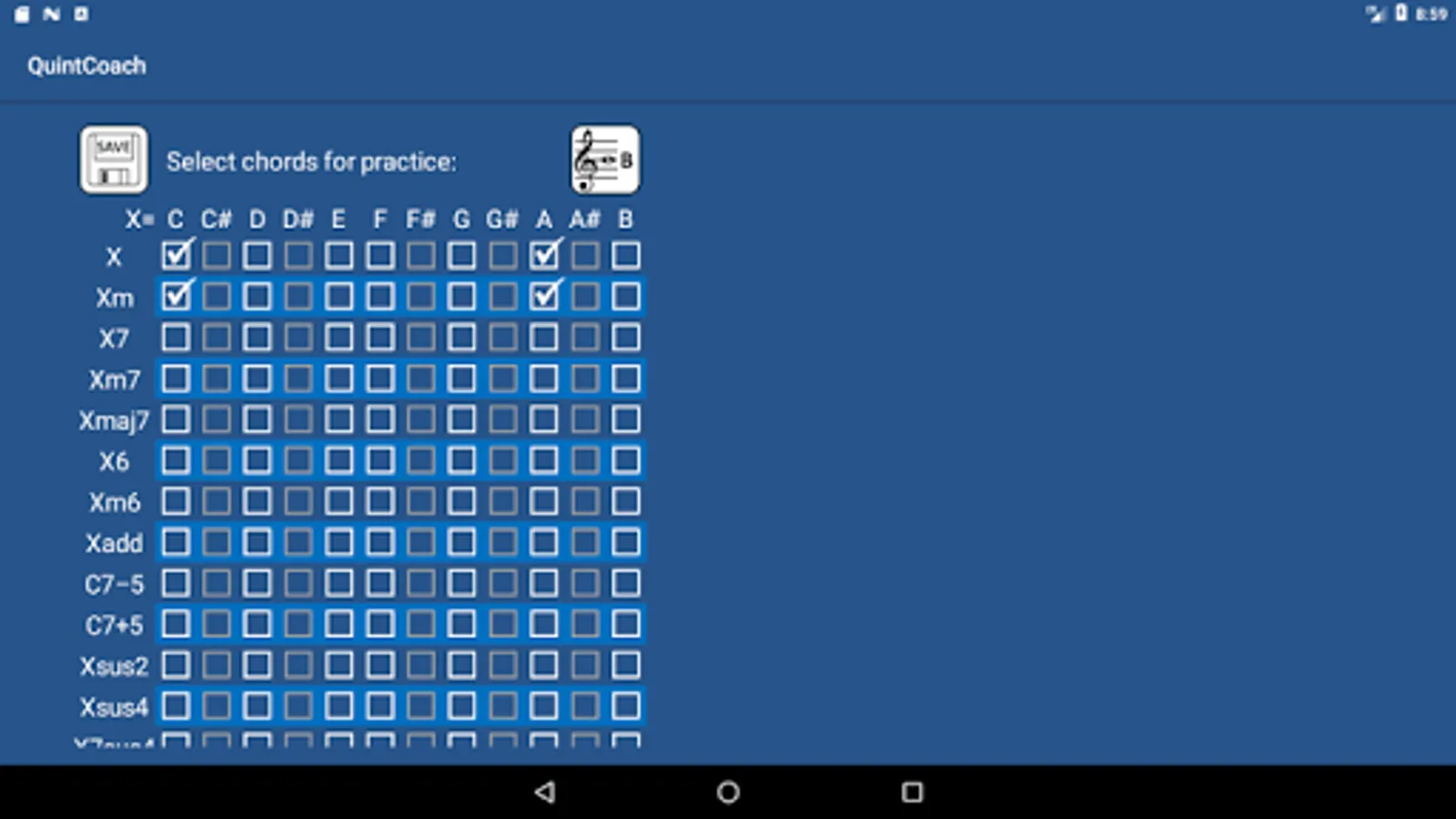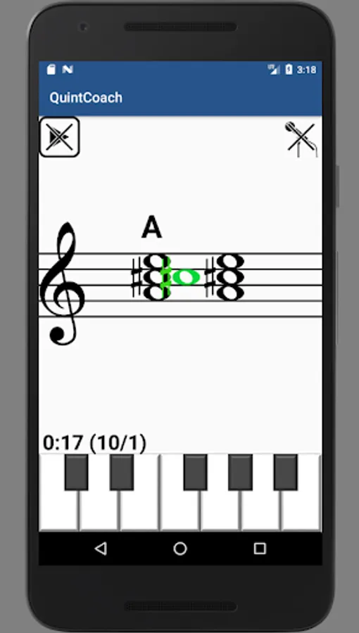 With QuintCoach Free, learning notes and chords is just fun! The software supports tablet computers as well as handheld devices. If you want an add free version of this software, check out "QuintCoach". This is the same software, but without any adds and a couple of more options in terms of chord variety and usable octaves.