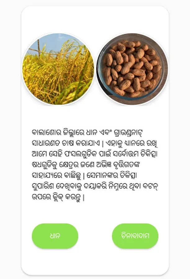 It advises the most effective and readily available pesticides, insecticides, and herbicides available in the Balasore district. Paddy and groundnut, the two most cultivated crops in the Balasore district have been covered by Digi Agri.