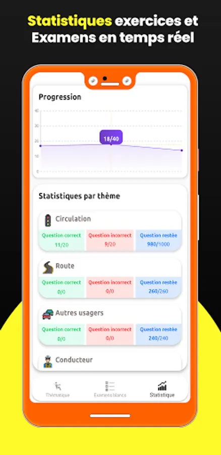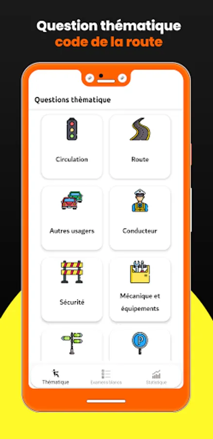 Tests of 40 questions on the different topics of the highway code and tests of 20 questions on a topic of the highway code of your choice.