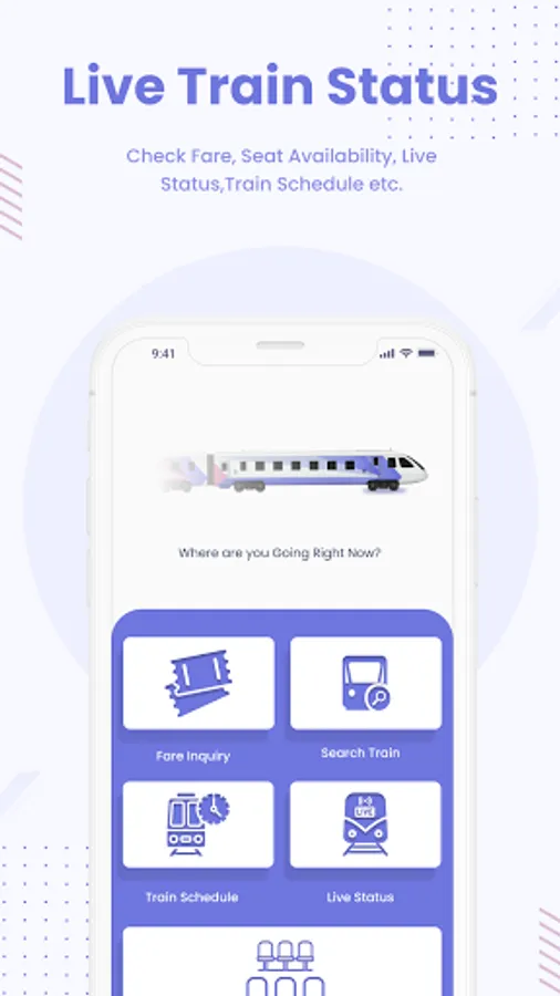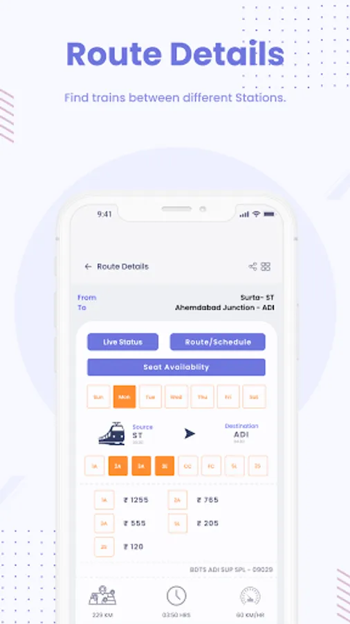 Train status, time tables, station status, seat availability, fare and check where is my train live location.