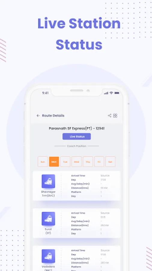 => Search train live status now you can find where is my train running and get exact location and delay which platform train will arrive.