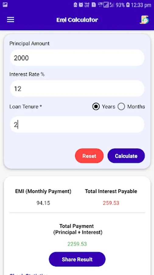 EMI Calculator is a simple loan calculation tool that helps the user to quickly calculate EMI and view payment schedule. Use this EMI Calculator to calculate your EMI (Equated Monthly Instalment), plan your loan repayment in an effective way.