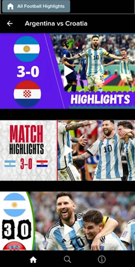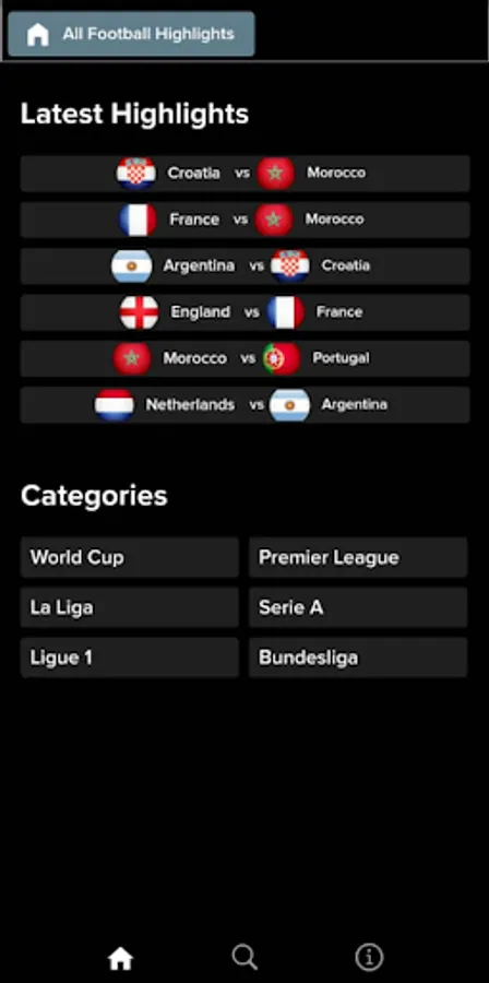 Watch Full Match Highlights and Goals from major leagues around the world in high Quality with a single tap.