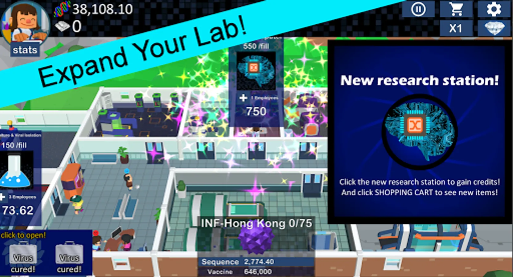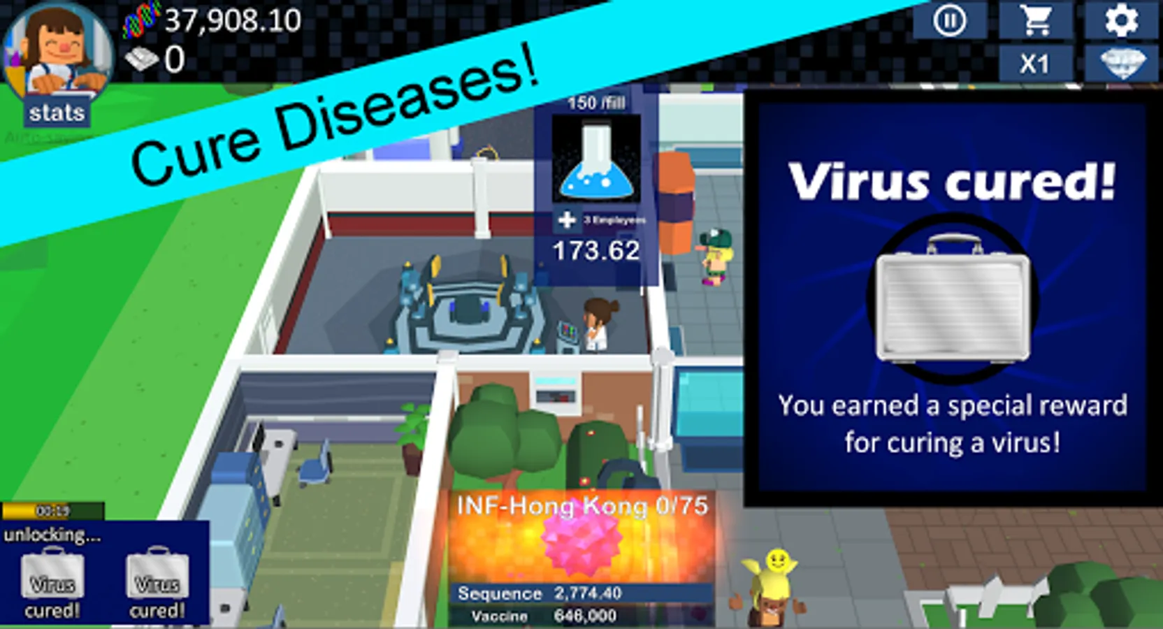 Antidote Lab is an expansive Idle game where you build out a 3D research laboratory. Hire researchers, expand with new research stations, and develop vaccines for different viruses from all over the world!