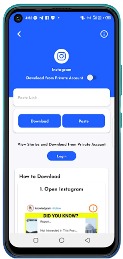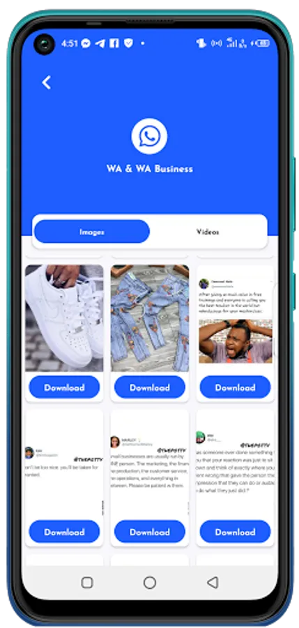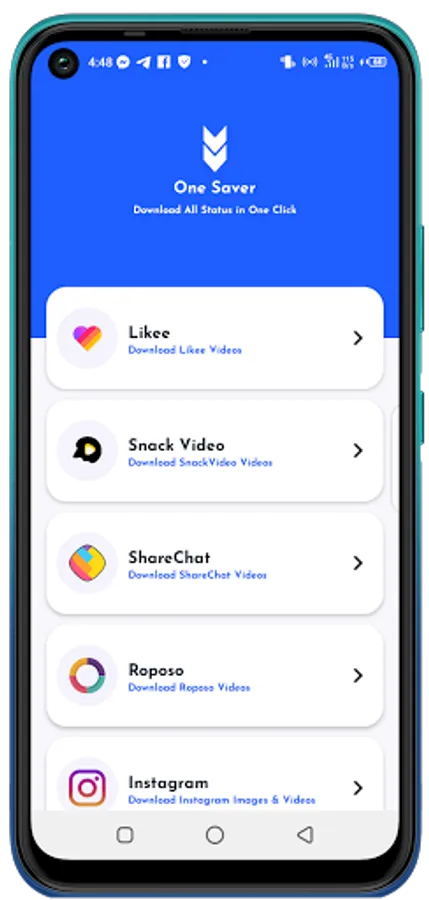 Downloader for Facebook, Instagram, Whatsapp, Twitter, TikTok, Likee, Roposo, Share Chat, Snak Video.