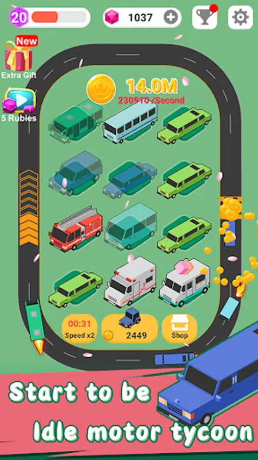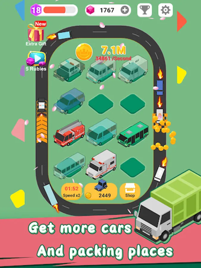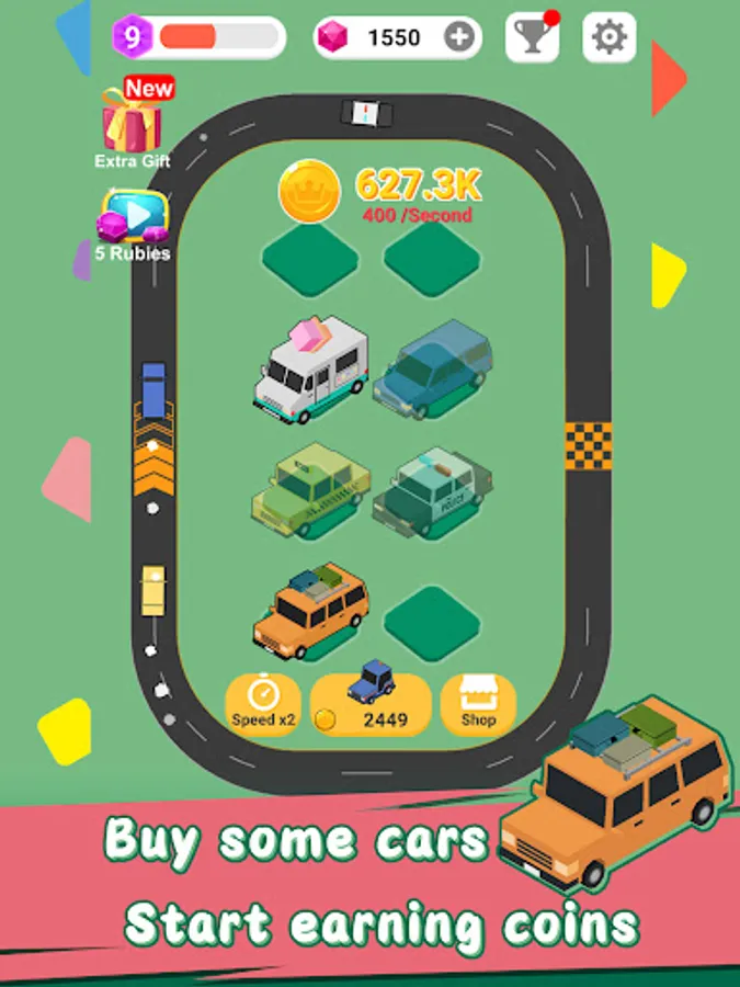 To get started, purchase a fleet of cars and set them loose on the highway. Watch as your vehicles effortlessly generate money for you, even when you're not actively playing. As the coins start rolling in, expand your collection by reinvesting your earnings into buying more cars. The more cars you have, the faster your wealth grows.